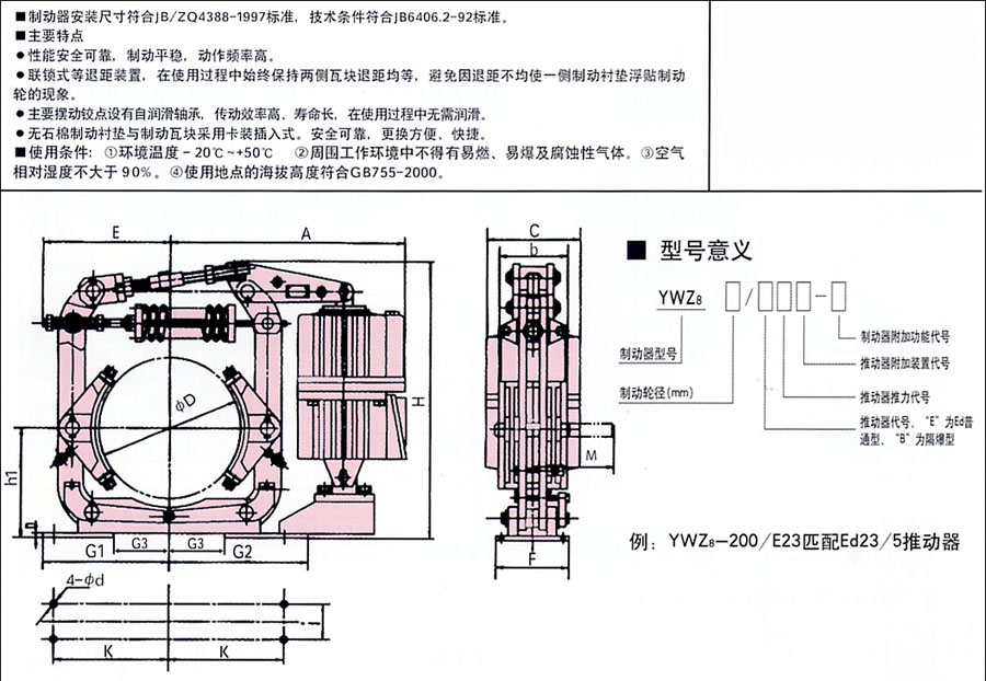 優質YWZ8-200/23液壓制動器YWZ8-300/E50制動器YWZ8-300/E80制動器YWZ8-400/E80制動器YWZ8-400/E121制動器YWZ8-500/121制動器,我公司工業制動器產品性能安全可靠,制動平穩,動作平率高,使用壽命長。